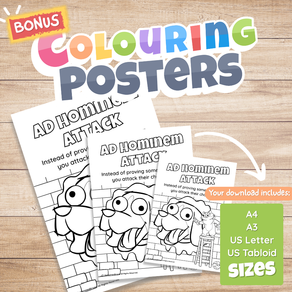 Posters that can be coloured in or your child can draw their own design to illustrate the fallacy (you can print them in A4, A3, 11x17in, 8.5x11in size).