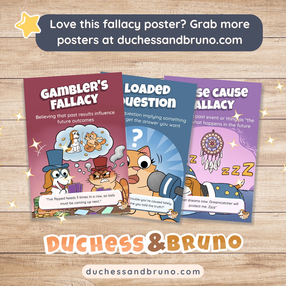 This vibrant A3 poster, printed on high-quality 250gsm matte paper at 300dpi, makes spotting this fallacy fun and clear — perfect for classroom walls, homeschool spaces, or kids’ rooms.