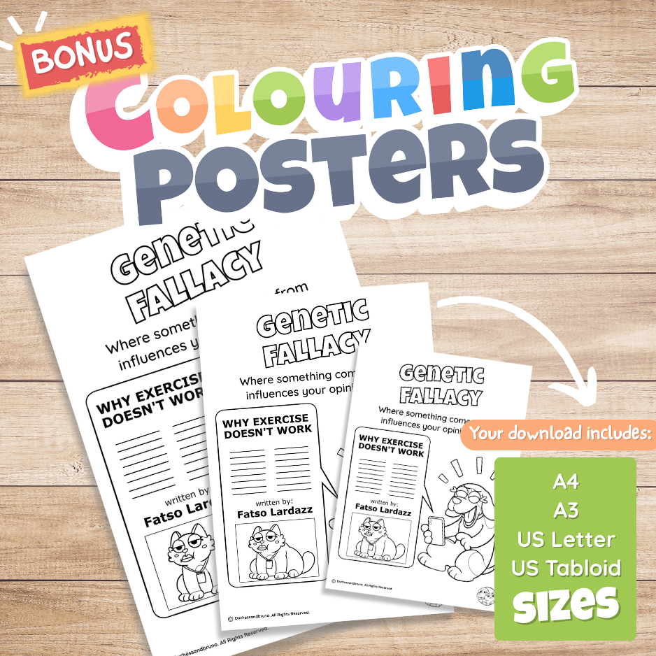 Posters that can be coloured in or your child can draw their own design to illustrate the fallacy (you can print them in any size, A4, A3, 11x17in, 8.5x11in).