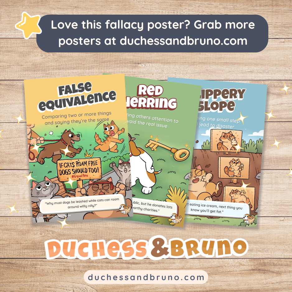 This vibrant A3 poster, printed on high-quality 250gsm matte paper at 300dpi, makes spotting this fallacy fun and clear — perfect for classroom walls, homeschool spaces, or kids’ rooms.